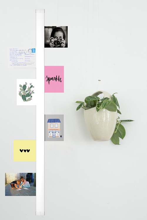 The Card Rail is the ideal wall hanging system for all your photos, cards, reminders, to-do’s, etc. The Card Rail has openings on the sides where you can easily insert your cards, photos or other memories. By using Mouse Magnets on your hanging system you create a playful effect that presents your memories in a fun and creative way. The card rail is 114 cm, comes in white color and paintable.