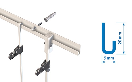 The Classic Rail + is a picture hanging system for walls that has been specially developed for hanging heavier paintings and wall decorations. This hanging system is widely used in galleries, for exhibitions or in museums. The suspension rail (9 mm x 20 mm) has an open, J-shape in which various rods, fitted with rod hooks, can be hung. This makes it extremely easy to move or exchange art. The Classic Rail + has a white and aluminum version. Various rods made of aluminum or steel can be used for decorations with a maximum weight of up to 100 kg.