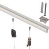 The Up Rail is the ceiling rail par excellence! If it is not possible or desirable to drill into the walls in a room, the Up Rail is a good choice. The Up Rail is securely attached to the ceiling using clips and the round shape of the rail fills the space between the wall and the ceiling. By sliding or clicking the suspension wires into the rail, the walls can be arranged flexibly and without damaging the wall. So endlessly changing and moving wall decorations! The carrying capacity of the Up Rail is 20 kg per meter.
